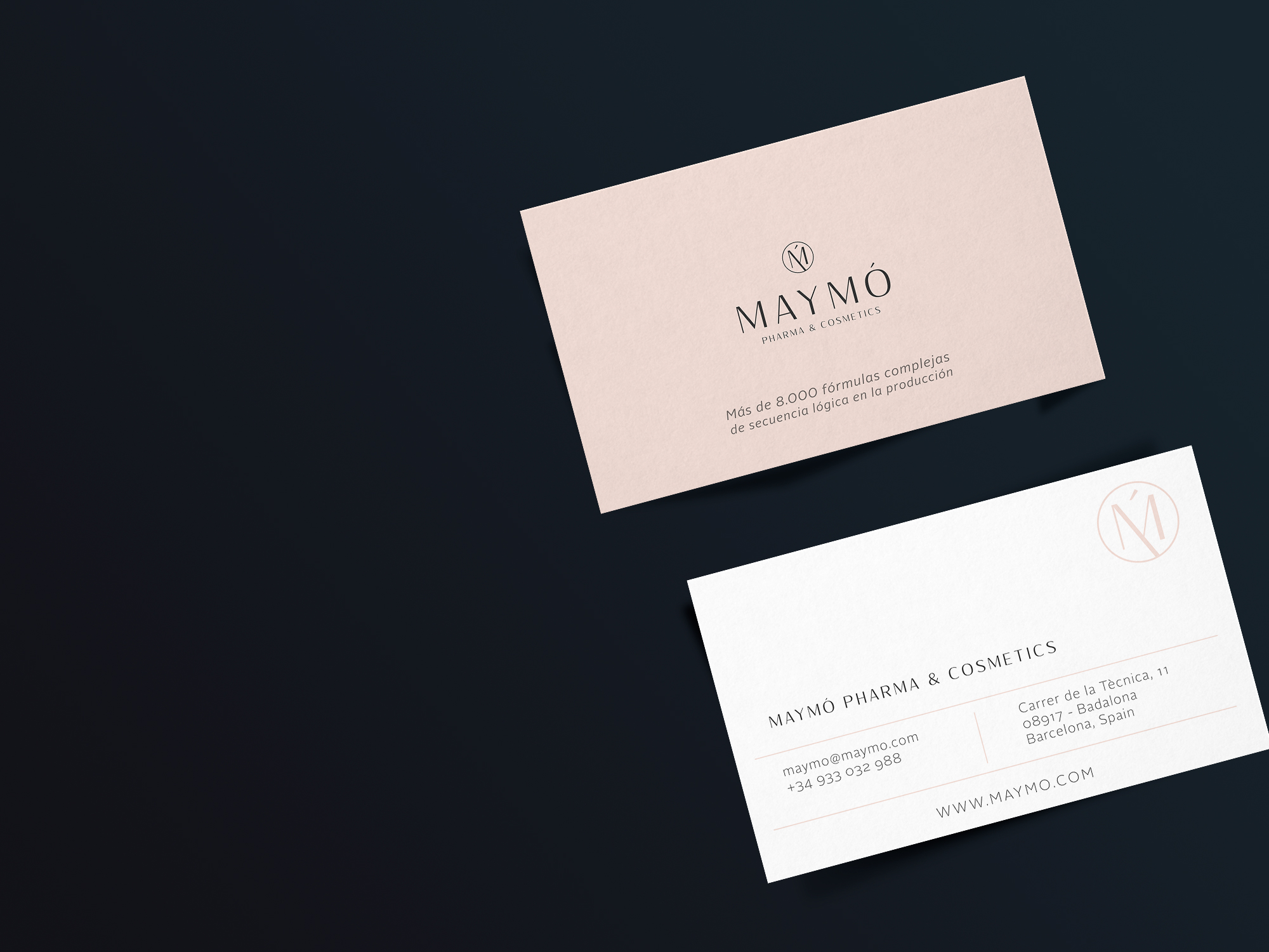 Resolució. Amb l'objectiu de renovar la imatge corporativa de Maymó Pharma & Cosmetics, Neorg va desenvolupar un nou logotip de formes senzilles però sofisticades en estètica, permetent reforçar la potència de marca global referent dins del sector de pharma i cosmètica i donant-li més entitat com a tal.