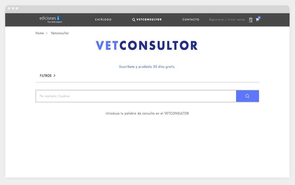 Briefing. Ediciones S es una editorial técnica especializada en libros de veterinaria. A día de hoy ha implementado en su página web un servicio de biblioteca virtual denominado “Vet Consultor” desarrollado por Neorg. Los principales objetivos han sido, a partir de un plan de lanzamiento al mercado español, incrementar la notoriedad de este apartado web, generar tráfico hacia la página corporativa y potenciar el número de usuarios suscritos al nuevo servicio.