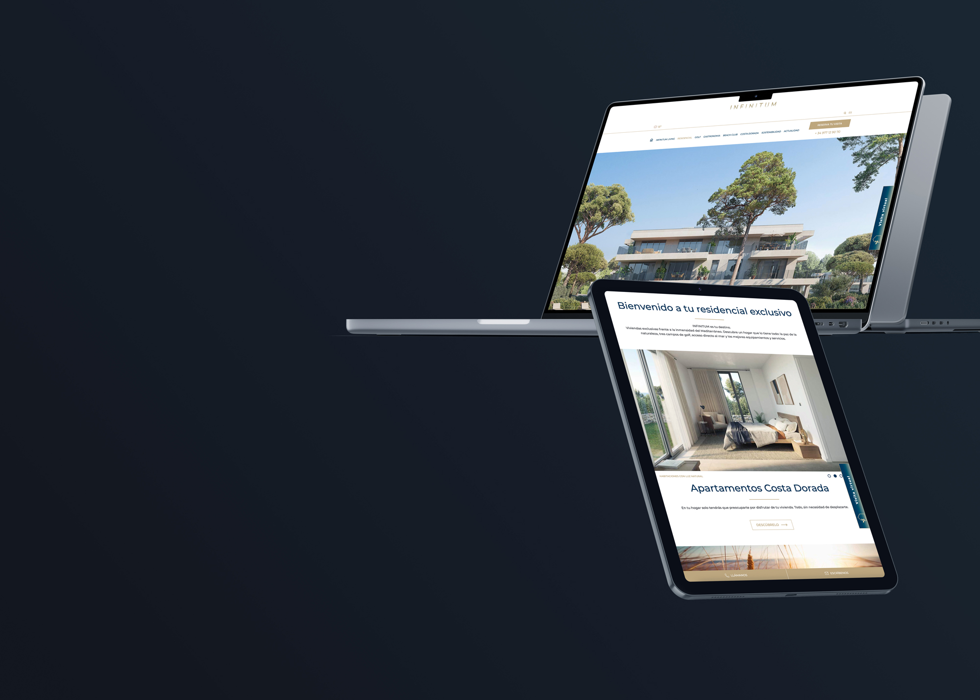 Resultados. En la primera fase de comercialización, que tiene como objetivo posicionar el residencial Infinitum en el mercado local, nacional e internacional, Neorg ha diseñado y gestionado la producción de la señalización del resort, la teatralización de la oficina de ventas, la campaña de medios (tanto digital como offline), la programación del website en tres idiomas, los soportes para ferias, la redacción de notas de prensa, newsletters y la organización del acto de presentación.