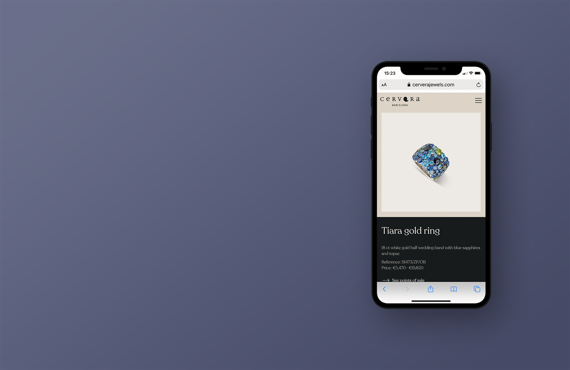 Cervera Jewels es una prestigiosa joyería que, a través de un estilo tradicional y a la vez mediterráneo, elabora piezas propias de manera artesanal en su atelier de Barcelona diseñadas de la mano de Xavier Cervera. Su objetivo era actualizar su página web para posicionarse como un referente del sector de la alta joyería, con una filosofía de marca de lujo, exclusividad y artesanía. Por este motivo, nos encargó conceptualizar toda la página web desde un punto de vista de comunicación de marca, a nivel descriptivo, gráfico y usabilidad web.